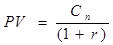 В общем случае, чтобы найти приведенную стоимость PV любого средства (реального или финансового), используемого в течение определенного холдингового (инвестиционного) периода, необходимо величину ожидаемого потока дохода от данного средства (С) умножить на величину 1/(1+r):