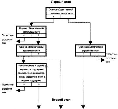 Цель этого этапа – агрегированная экономическая оценка проектных решений и создание необходимых условий для поиска инвесторов. Для локальных проектов оценивается только их коммерческая эффективность и, если она оказывается приемлемой, рекомендуется непосредственно переходить ко второму этапу оценки. Для общественно значимых проектов оценивается в первую очередь их общественная эффективность. При неудовлетворительной общественной эффективности такие проекты не рекомендуются к реализации и не могут претендовать на государственную поддержку. Если же их общественная эффективность оказывается достаточной, оценивается их коммерческая эффективность.