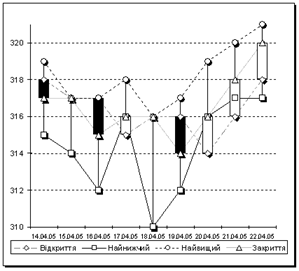 4. Визначити частоту і характер розривів показника, що спостерігається. В теорії технічного аналізу виділяють різні види розривів (прискорюючий, уповільнюючий, випереджуючий, острівний, кінцевий тощо), кожен з яких дозволяє визначити напрями й ступінь інтенсивності зміни тенденції показника. Висновки технічного аналізу використовуються не тільки для дослідження поточної кон’юнктури інвестиційного ринку, але й для її прогнозування. Прогнозний апарат технічного аналізу базується на окремих теоріях, серед яких найбільше розповсюдження одержали: теорія Доу, теорія хвиль Еліота, теорія ковзаючої середньої та деякі інші.