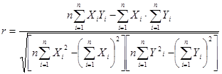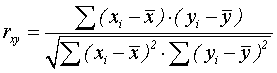 В формуле подсчета коэффициента корреляции встречается величина при делении на n (число значений переменной X или Y) она называется ковариацией. Формула предполагает также, что при расчете коэффициентов корреляции число значений переменной Х равно числу значений переменной Y.