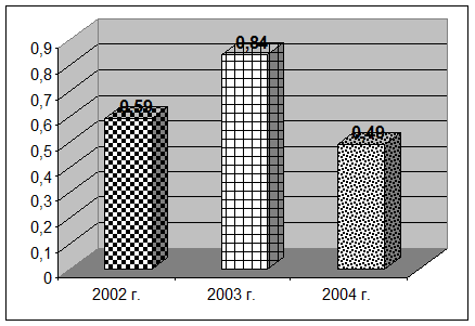 Рис.2.5. Рентабельность предприятия за 2002-2004 годы.