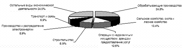 Информация о структуре совокупной задолженности по ЕСН, зачисляемому в федеральный бюджет, в разрезе основных видов экономической деятельности по состоянию на 1 января 2007 года представлена на рис. 3.