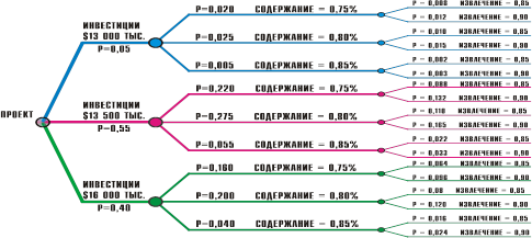 развития предприятия с различными вероятностями исходных параметров.