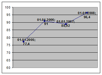 Снижение количества сведений внесенных в 2007г. обусловлено тем, что в период 2004-2006гг. проводилась работа по внесению сведений о банковских счетах открытых ранее.