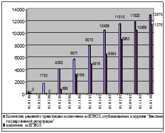 Резкое изменение в процессе регистрации произошло с момента вступления в действие в 1990 г. законов: «О предприятиях и предпринимательской деятельности» и «О собственности в РСФСР». Следует подчеркнуть, что до вступления в силу с 1 июля 2002г. закона «О государственной регистрации юридических лиц» процесс регистрации в стране основывался на статьях 34,35 закона «О предприятиях и предпринимательской деятельности»[40].