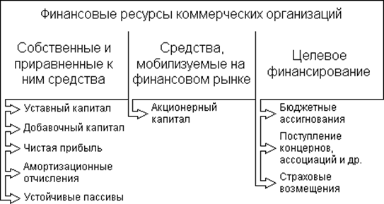 Рисунок 1- Состав финансовых ресурсов коммерческих организаций