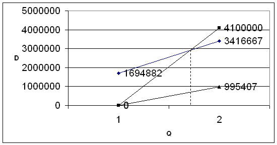 Рис 1.1 Графический метод расчета безубыточности