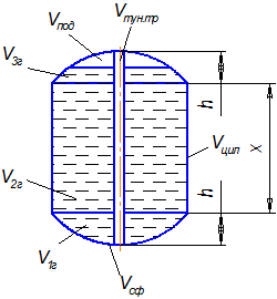 Объём горючего в верхней сфере БГ с учётом объёма туннельной трубы:
