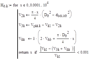 Высоту цилиндрической части бака горючего вычислим с помощью итераций: