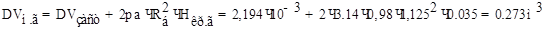 Объём горючего в цилиндрической части БГ с учётом объёма туннельной трубы: