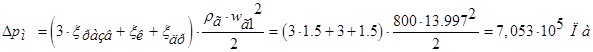 Определяем потери давления на создание скорости: