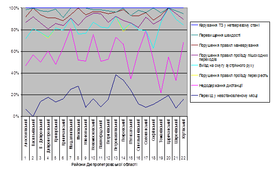 research of road and transport incidents in the Dnepropetrovsk area, their analysis and the reasons. Application of this themes in practice.