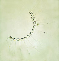 Так же много в планктоне и личинок раков на ранних стадиях развития - науплиусов, большинство из них - личинки тех же веслоногих рачков. Эти маленькие волосатые чудовища не менее подвижны и прожорливы, чем взрослые копеподы - им надо есть как можно больше, чтобы вырасти, и, после многократных линек, превратиться во взрослое животное - скорее всего, в ойтону, калянуса, или акарцию - их здесь больше всего.