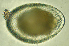Вот совсем "большая" - 0,4 мм - личинка двустворчатого моллюска, скоро она уже будет готова осесть на дно. А с этой личинкой - с веселым хохолком на голове - нам повезло, она встречается довольно редко; это пилидий - личинка червя немертины.