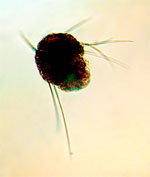 В планктонных пробах из прибрежья Черного моря мы находим множество разнообразных личинок донных животных. С ранней весны до середины осени, часто встречаются трохофоры - личинки многощетинковых червей - полихет - и моллюсков. Они двигаются с помощью ресничек, собранных в несколько рядов. По мере того, как трохофора растет, она меняется, и приобретает черты, в которых уже можно узнать будущее взрослое животное.