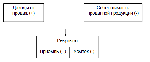 Способ определения результата методом функций затрат, или «себестоимости продаж» (рис. 1.2) основан на сопоставлении выручки от продаж с себестоимостью проданной продукции (товаров, работ, услуг).