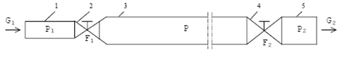 F2-площадь проходного сечения выходного регулируемого клапана, м2.