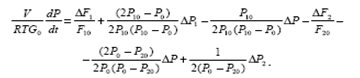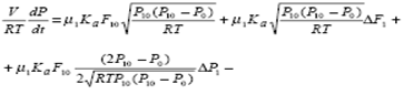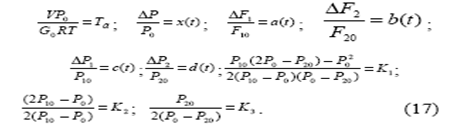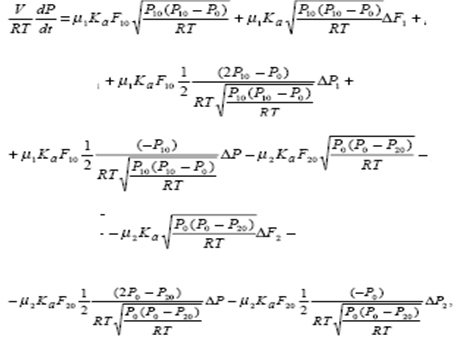 Полученное уравнение (9) - это нелинейное уравнение, которое для дальнейшего анализа необходимо линеаризовать. Переменными величинами в уравнении (9) являются F1, F2, P1, P и P2. Установившиеся значения этих переменных величин обозначаем через F10, F20, P10, P0 и P20. Соответствия между переменными величинами и их установившимися значениями имеют вид: