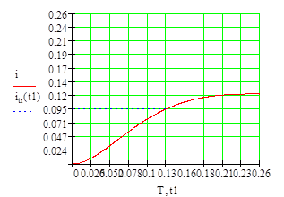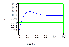 Рис.2.12. График зависимости тока от времени при замедленном срабатывании электромагнита (метод решения с помощью передаточной функции)