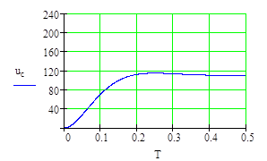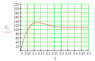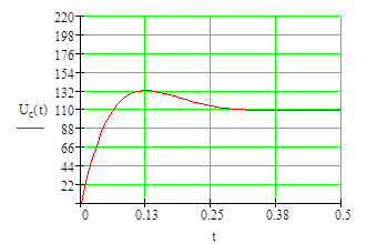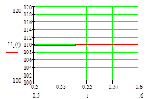 Решение наглядно показывает, что установившееся значение напряжения =110,205 В