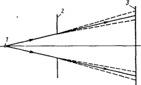 Рисунок 1- Дифракція світла на отворі в непрозорому екрані: 1- джерело світла; 2- непрозорий екран з отвором; 3- площина спостереження