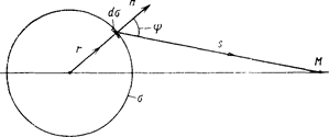 де А- амплітуда хвилі, створюваної реальним точковим джерелом на одиничній відстані від нього; r- відстань від точкового джерела до обраної точки на поверхні; k = 2p/l; s- відстань від точки на поверхні s до точки спостереження М.
