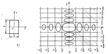 Досліджуємо картини дифракції Фраунгофера від отворів різної форми, що спостерігаються при нормальному висвітленні отворів монохроматичним світлом. Відносний розподіл інтенсивності в дифракційних картинах обчислимо за допомогою дифракційного інтеграла Фраунгофера (6). Розглянемо спочатку випадок дифракції на прямокутному отворі (рис. 7, а). Якщо початок координат розташувати в центрі прямокутника, а осі Х і Y направити паралельно його сторонам, то дифракційний інтеграл Фраунгофера (6) приймає вигляд: