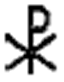 – также относится к древнехристианскому символу. Те формы креста, которые мы имеем в употреблении в настоящее время появились в христианстве не вдруг. Крест в глазах язычников служил символом позорной казни, и потому почитание его христианами вызвали насмешки и порицания. Это вынуждало христиан скрывать свои догматы под покровом символа. На первых порах христиане не только не изображали нигде распятого Христа, но даже не имели прямого изображения креста. Распространенный в дохристианской древности обычай изображения монограмм подал христианам мысль о монограмматическом изображении Христа и креста.