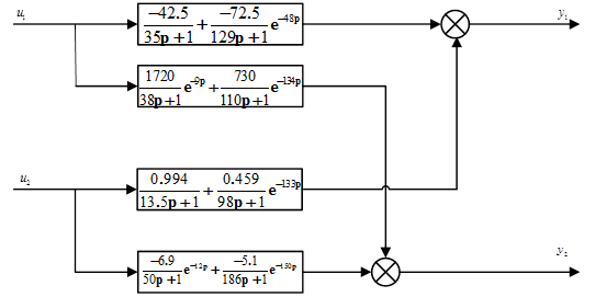 у1,…, у2 – управляемые переменные (измерения), u1,…,u2 – управляющие воздействия, время в секундах