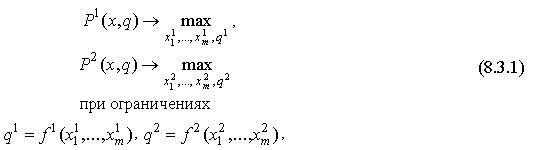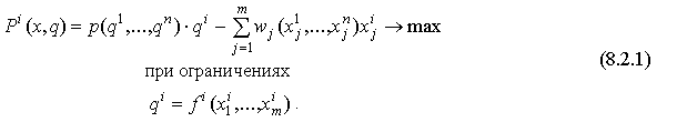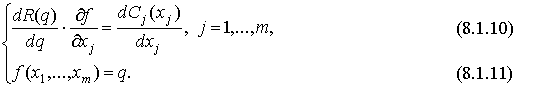 На основе теории нелинейного программирования, можно определить математические условия оптимальности решений для модели (8.1). С задачей нелинейного программирования связывается так называемая функция Лагранжа, которая для задачи (8.1) имеет вид