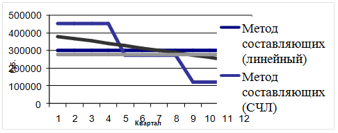ПРИЛОЖЕНИЕ Г. Сравнительный анализ графика выплаты лизинговых платежей, рассчитанных различными методами