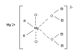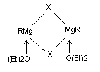 Mg в эфире дает продукт, полностью идентичный RMgHal. Полагают, что в равновесии Шленка участвуют сольватирированные комплексы, например: