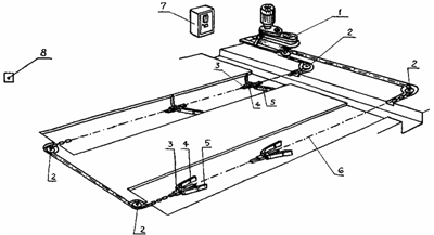 Принципиальная схема скреперного навозоудалителя выглядит следующим образом: