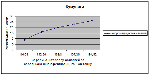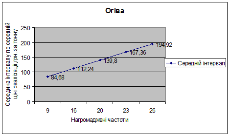 Згрупувавши господарства за кількістю реалізованої продукції та ціною реалізації, ми бачимо, що утворилось п’ять груп, в яких ми визначили кількість господарств, що входять до кожної із них, а також визначили середню виручку від реалізації по кожній групі.