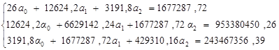 Рівняння регресії впливу ціни та кількості реалізації молока на виручку від реалізації має такий вигляд: