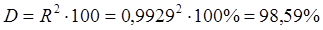 Множинний коефіцієнт кореляції становить 0,9929, а це означає, що зв'язок між виручкою від реалізації та сукупністю її факторних ознак (ціна реалізації та кількість реалізованої продукції) є тісним прямим.