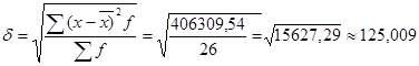 Середня арифметична, розрахована двома різними способами, дає один і той самий результат, і ми можемо стверджувати, що середня кількість реалізованої продукції становить 485,546 тонн, а середня ціна - 122,762 грн., і середня виручка від реалізації складає 64511,066 грн.