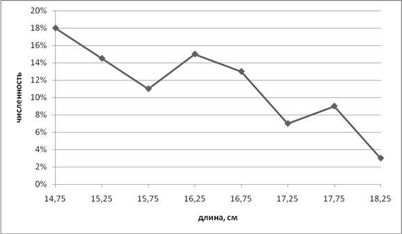 1. Исследуемые рыбы состоят из трех возрастных групп, среди которых преобладают двухгодовики (40 %), доля годовиков составляет 38,2 %, доля трехгодовиков 21,8 %.