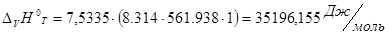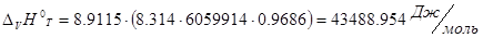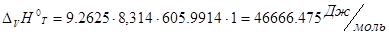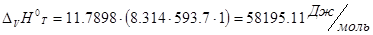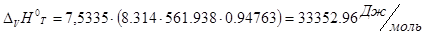где взято из задания №9; М=114 молярная масса вещества; - изобарная теплоемкость; R=1,987.
