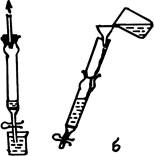 стакан объем, равный полутора объемам предполагаемой рабочей части колонки. Колонку вместе с удлинительной трубкой слегка наклоняют и, еще раз взболтав кашицу в стакане, выливают сразу все его содержимое в воронку (рис. 1б). Кашица стекает по стенке колонки. В случае образования пузырька воздуха, он легко поднимется и выйдет через не слишком густой слой текущей смеси.