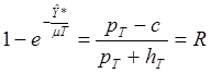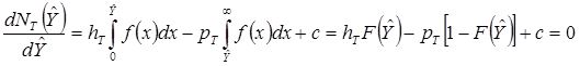 Найдите критические уровни и в статической модели управления запасами с вероятностным спросом и отсутствием задержек в поставках. Функции издержек хранения и дефицита линейны. Параметры задачи :hT