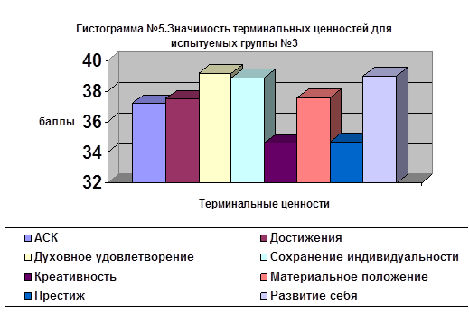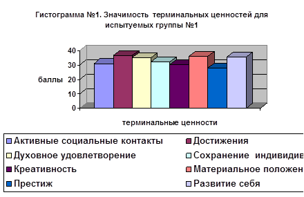 Приложение3. Гистограммы и таблицы, отражающие значимость терминальных ценностей и жизненных сфер для испытуемых трех групп