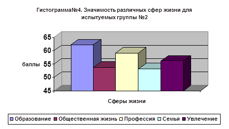 Таблица №2. Уровень значимости терминальных ценностей в разных сферах жизни для испытуемых группы №2