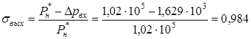 7. Уточняем -коэффициент восстановления полного давления в выходном патрубке: