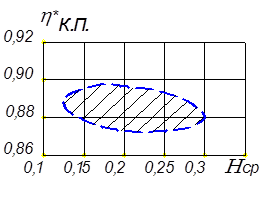 Величины среднего коэффициента теоретического напора ( ), как и величина коэффициента теоретического напора ( ), ограничены степенью диффузорности каналов по числам и в решётках. По данным, приведённым на рис. 1, выбираются величины и .При заданном значении степени повышения полного давления р*к