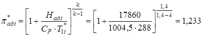1. Первоначальное значение степени повышения давления лопаточного аппарата: