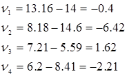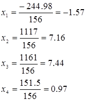 x1 + x2 + x3 + x4 = -157+7.16+7.44+0.97 = 14