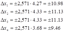 Для m-n=5 та ймовірності Р=0,95 коефіцієнт Стьюдента tp = 2,571