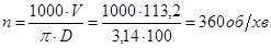 Частоту обертання шпинделя вибираємо за паспортом верстату: