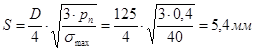де с=0,4 – коефіцієнт, що вибирається з відношення D/d, [1,с.211,т.4.6];